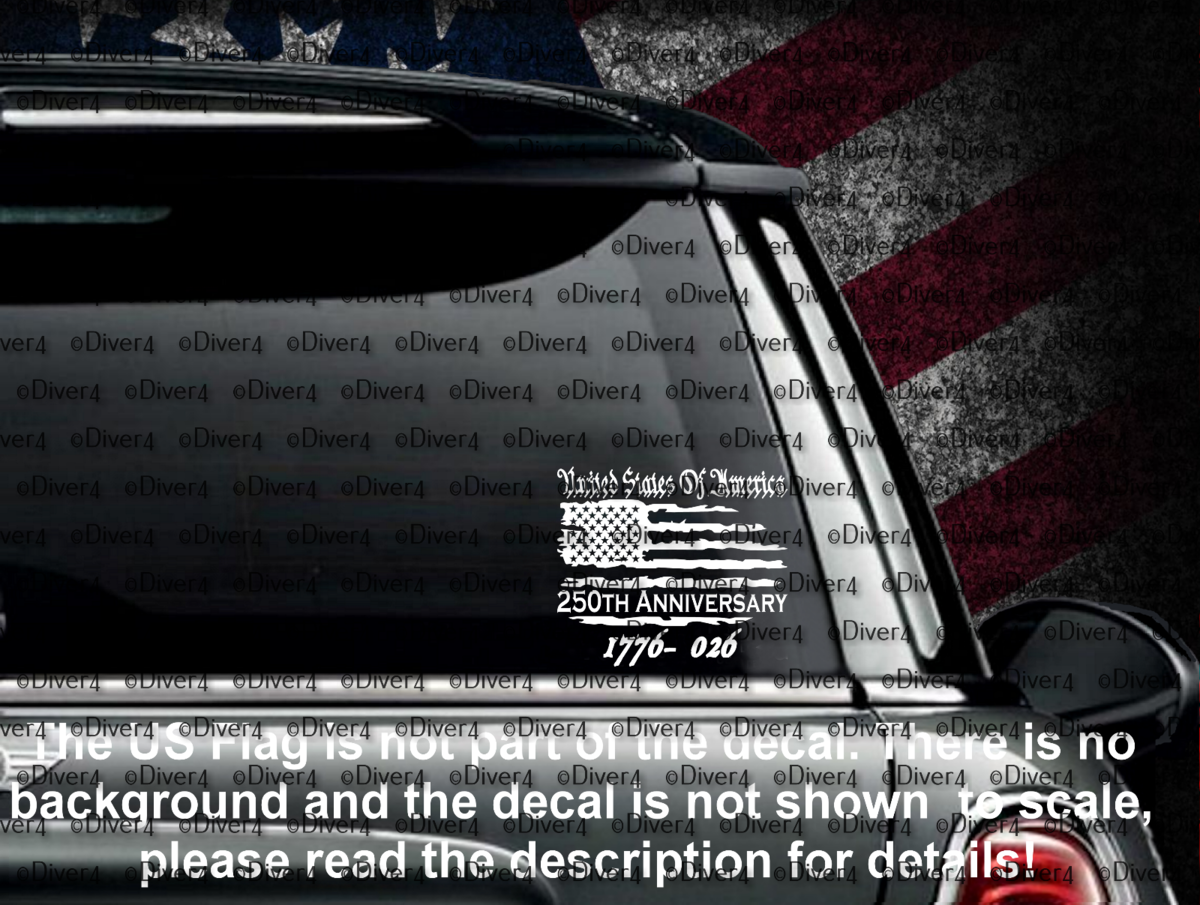 This is a custom United States of America 250th Anniversary Distressed Flag Semiquincentennial Car Window Decal Bumper Sticker US Seller vinyl car/truck window decal.