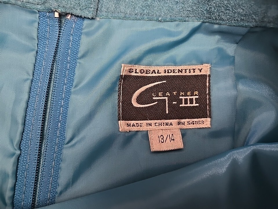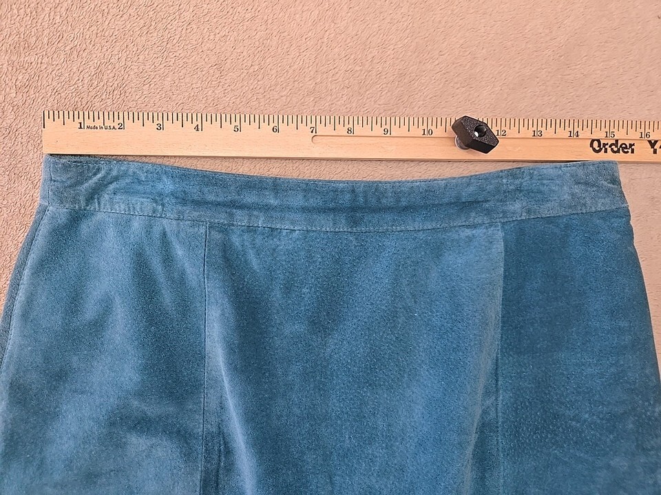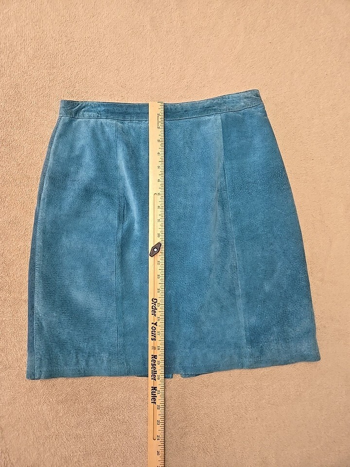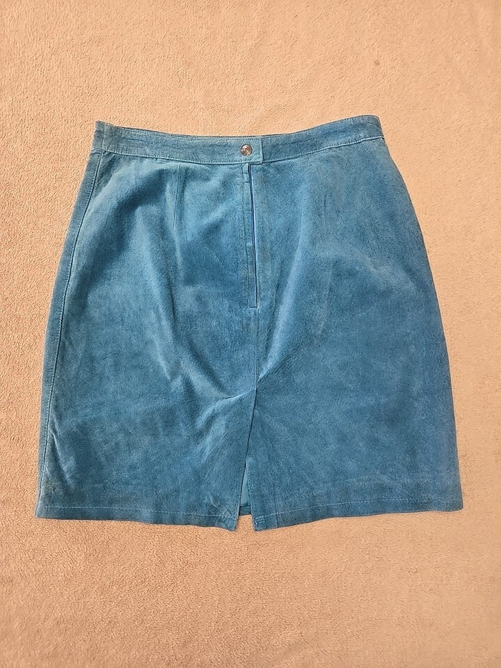 Global Identity Vtg 90s Y2K Suede Leather Mini Skirt Womens Size 13/14 Aqua Blue