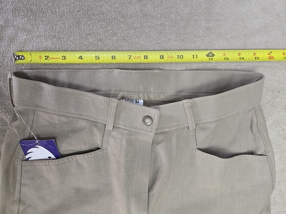 The Royal Highness Collection NWT riding pants are designed for women who love equestrian sports, specifically English riding. Made with a blend of cotton, nylon, and spandex, these tan pants are comfortable and durable. With a size 34 fit, they offer a sleek and stylish look while providing the necessary support for a day in the saddle. Crafted in India by the reputable brand Royal Highness, these riding pants are a must-have for any rider looking to elevate their performance.