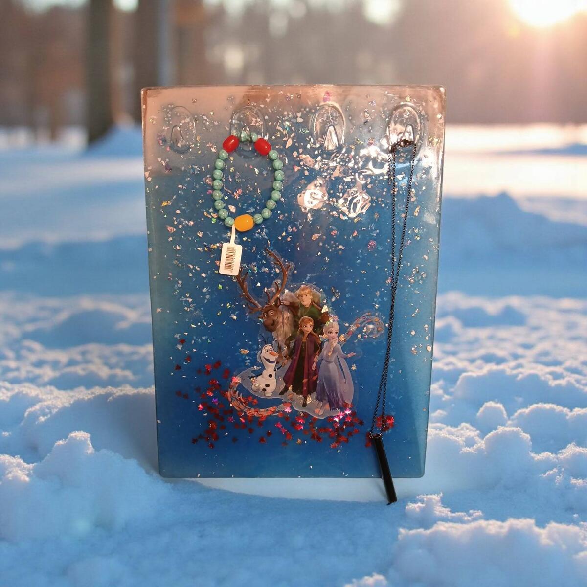 Captured against a crisp, sun-drenched winter wonderland, this handcrafted Frozen-themed jewelry organizer is a sparkling tribute to Arendelle.