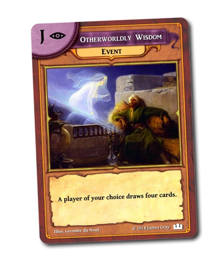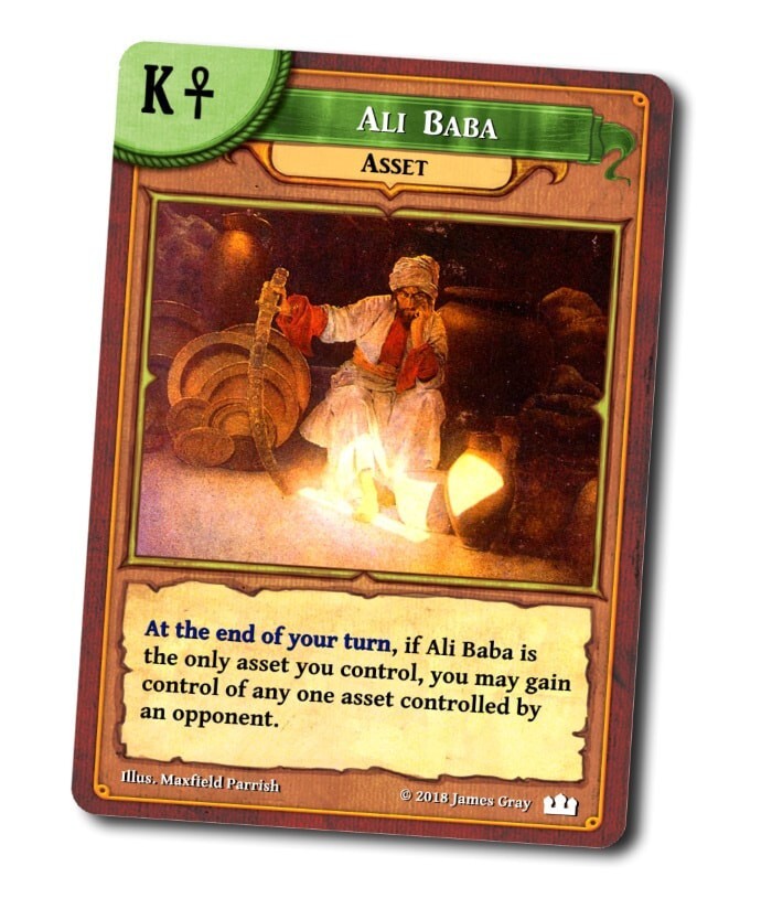 Crazier Eights: One Thousand One Nights is a stand alone gateway fantasy card game inspired by the stories told by Shahrzad. There are fifty-two unique cards, and many represent characters and other elements from the One Thousand One Nights stories, such as Aladdin, Princess Parizade, and Ali Baba. Every card has a unique ability. The first player with zero cards in hand wins. During your turn, you draw a card, play a card, and discard a card.