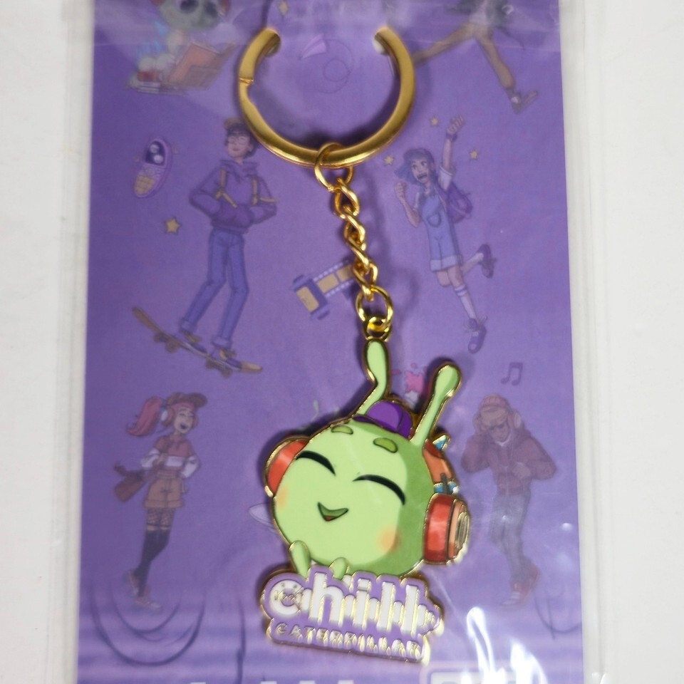 It serves as a rare, authentic piece of memorabilia from the convention, capturing a secret moment in the bustling chaos of NYCC. Made of Premium Hard Enamel on Gold-Tone Metal, with a classic keyring on one end, and the Chill Caterpillar character wearing a pair of headphones on the other. It is brand New, still sealed in original poly bag.