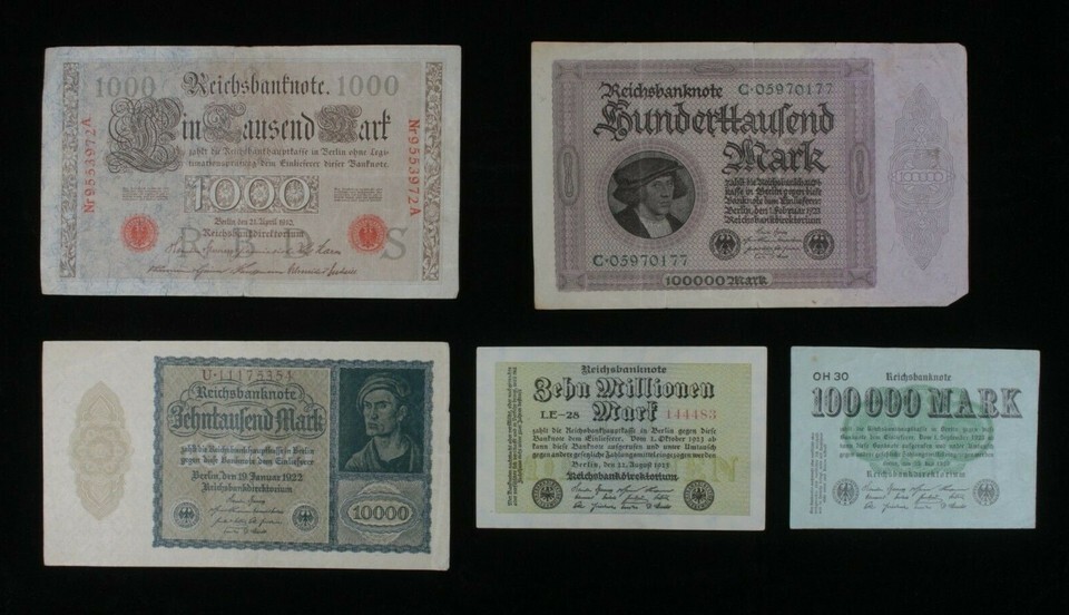 1910-1923 Germany 5-Notes // German Empire Weimar Republic // 1000-10 Million