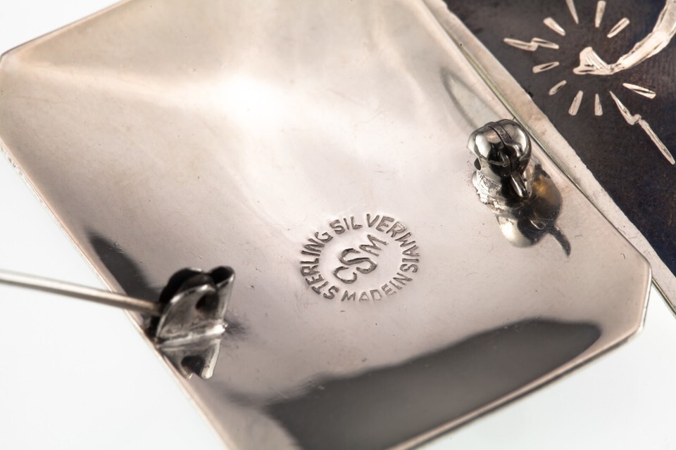 Authenticity Guarantee Gorgeous Sterling Silver Siam Niello Enamel Brooch Se...