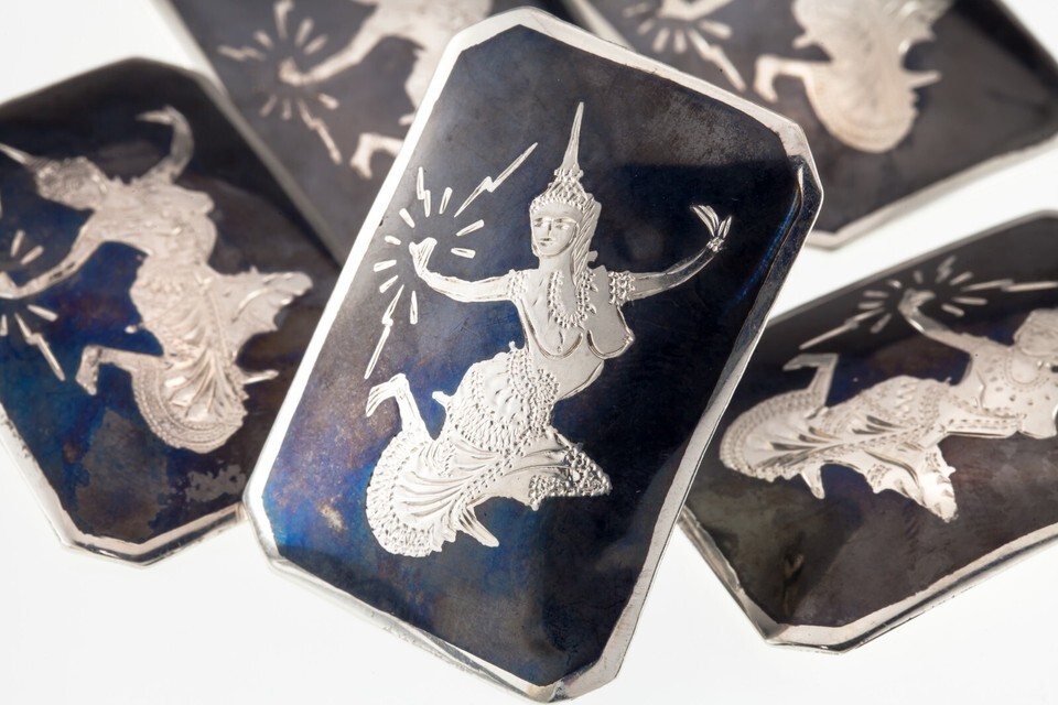 Gorgeous Sterling Silver Siam Niello Enamel Brooch Set of 5 (49.1g)