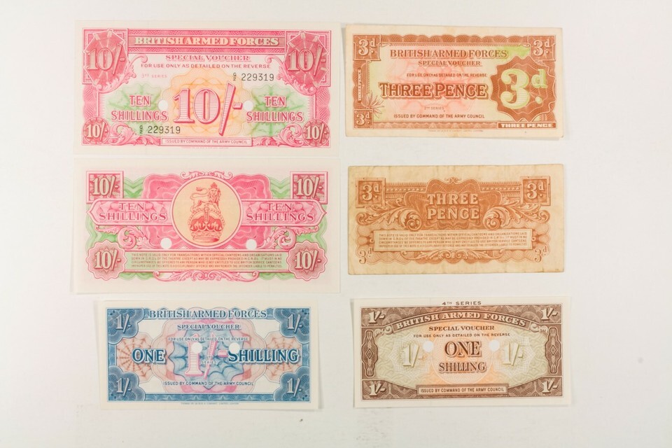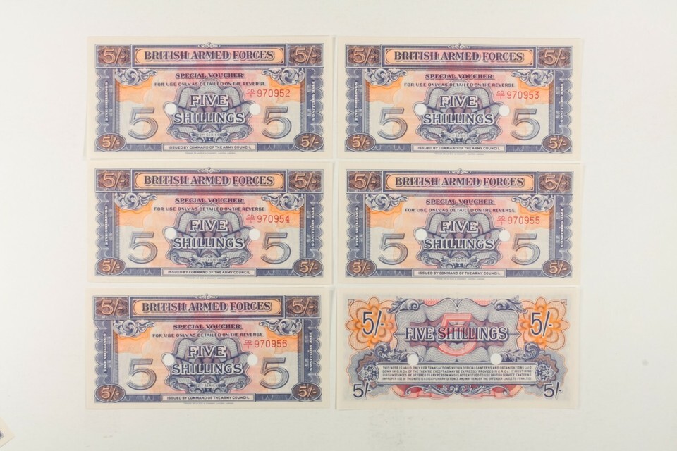 Great Britain military notes. British Armed Forces, special voucher. 23 note, both consecutive numbered and singles.