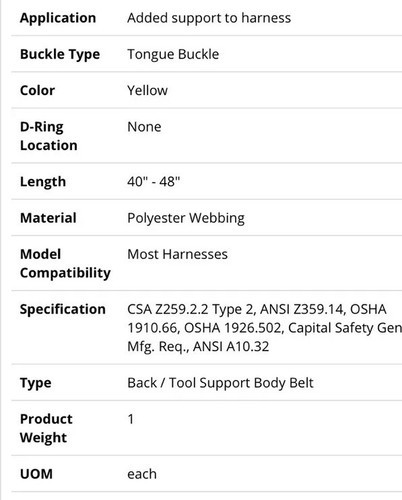 DBI SALA safety 1000054 Tongue Buckle tool back support body belt large 40-48 in