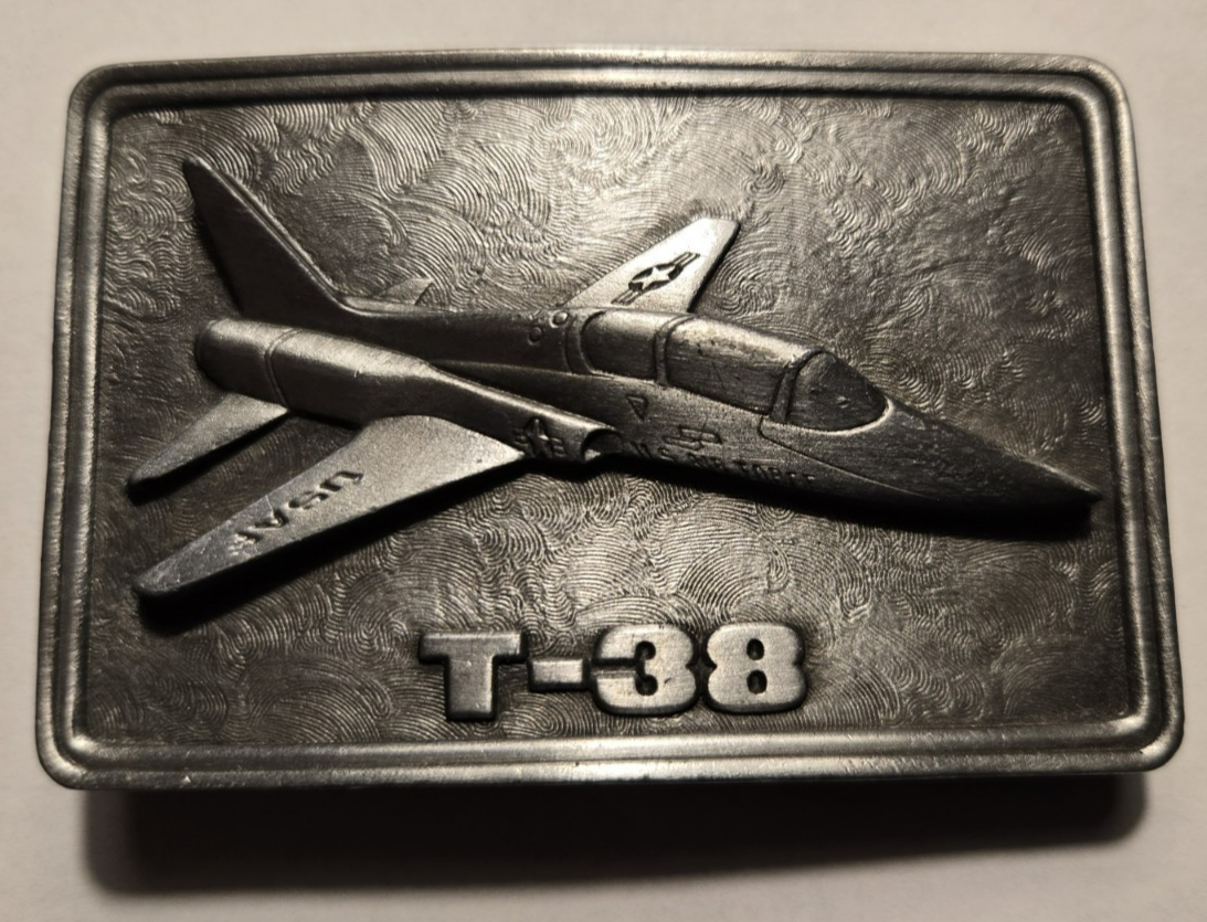 Vintage Northrop T-38 LANCER USAF Jet Buckle Connection Pewter Belt Buckle