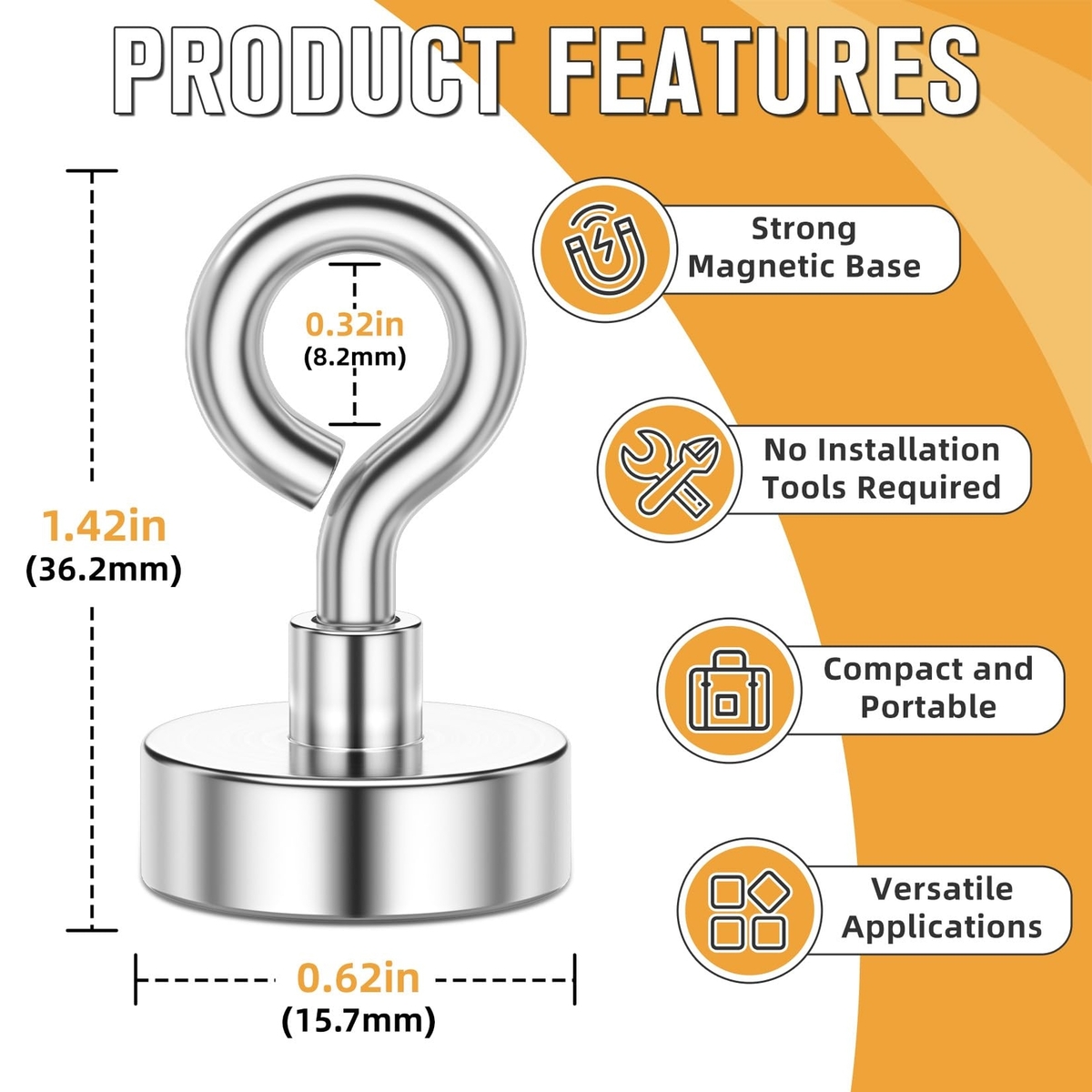 ?HIGH QUALITY?The silver metal magnetic hook heavy duty is coated with three layers: Ni-Cu-Ni. Due to three layers, the suction of strong magnets hooks is several times that of an ordinary magnet and helps to prevent chipping or cracking.