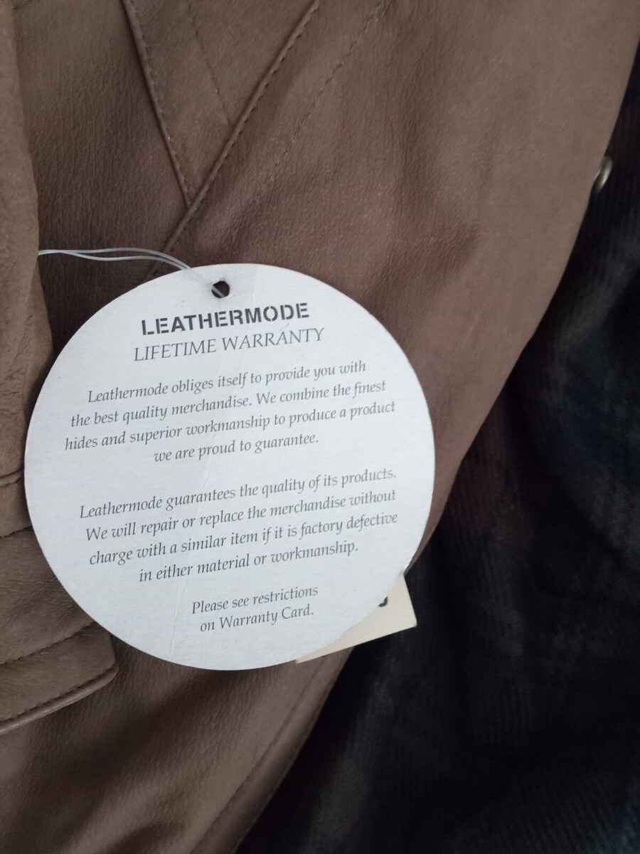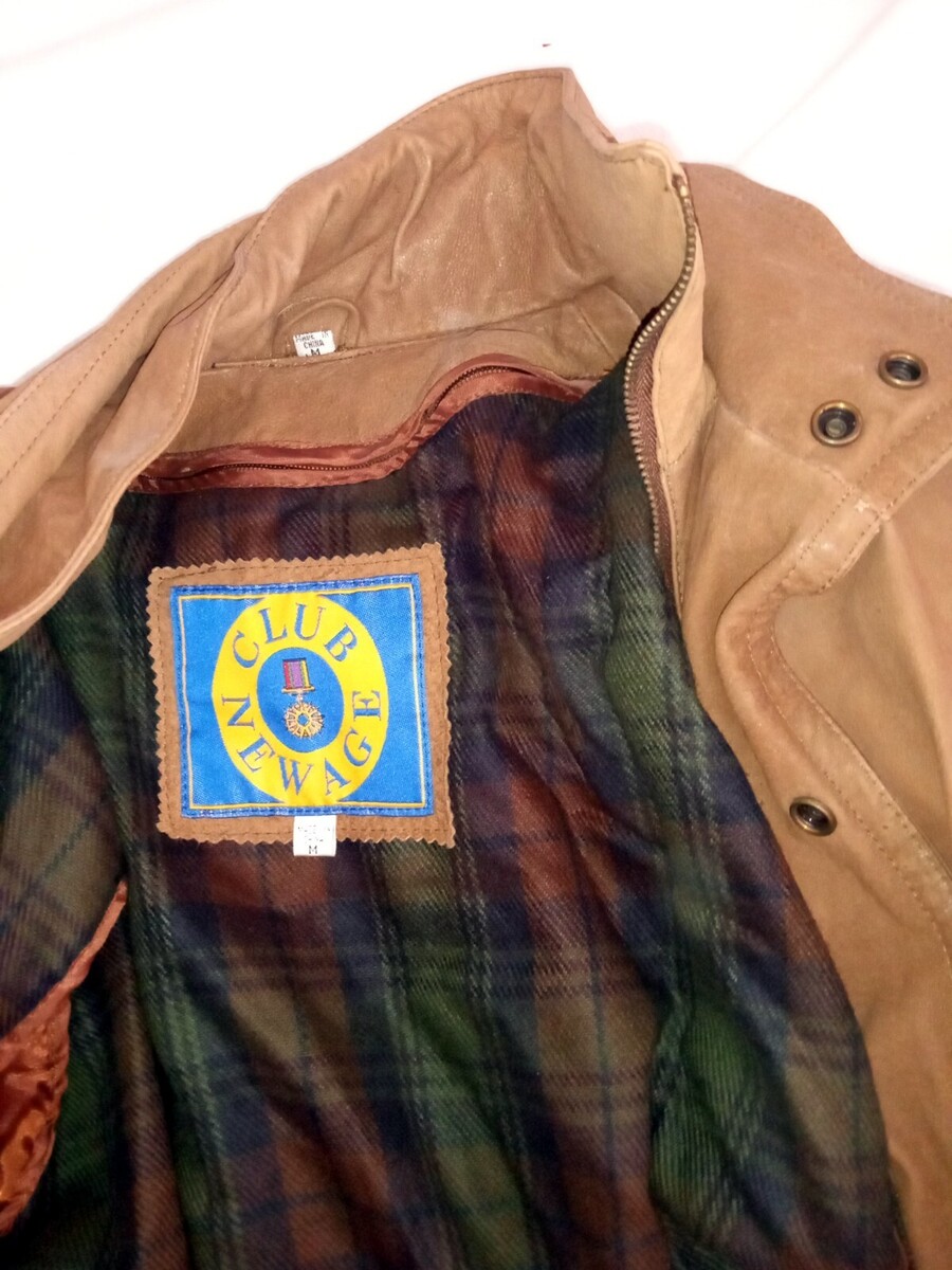 This is a nice Women's tan leather jacket - Medium - Leathermode w/ tags. Cozy interior with plaid inlay. Ships fast!