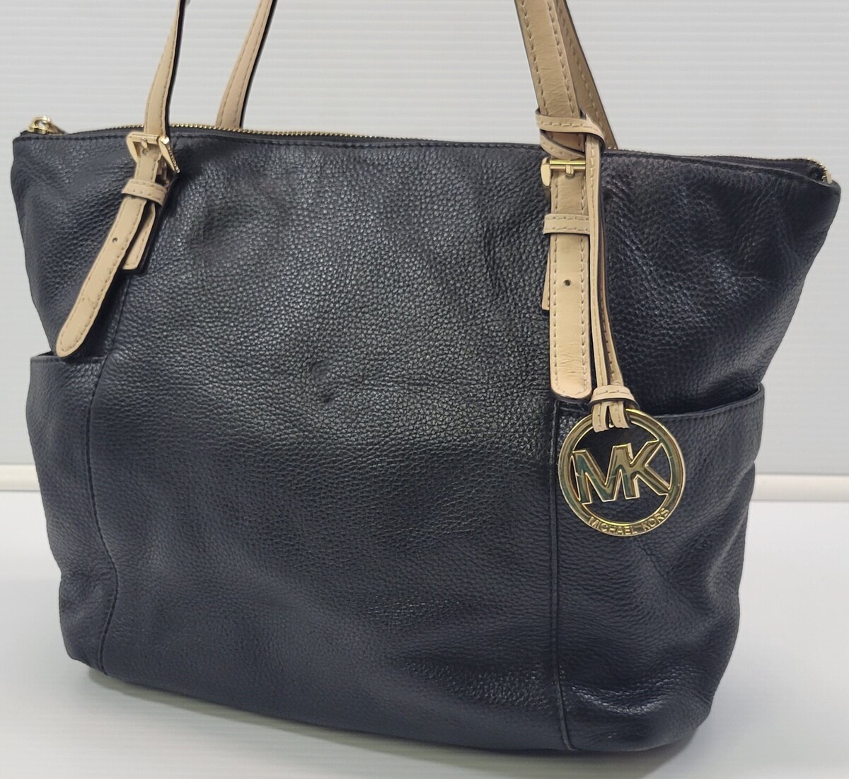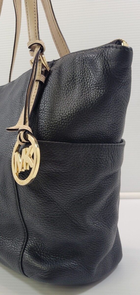 K) Michael Kors Pebble Black Leather Zip Tote Hand Bag