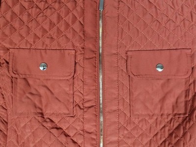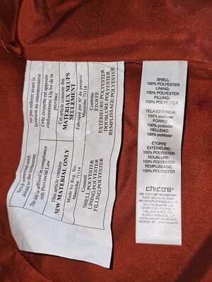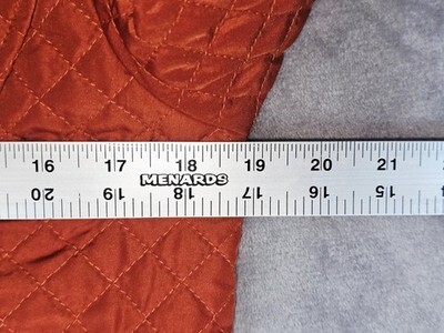 This Chico's bittersweet orange quilted jacket with brown faux leather trim in size 0 is a stylish and versatile outerwear option for women. Made from polyester with a softshell fabric type, it features a short length, long sleeves, and a zip and button closure. The jacket is perfect for various occasions such as travel, casual outings, and business meetings. With its quilted pattern accents and designer theme, this lightweight and lined jacket from Chico's is a classic and fashionable choice for winter, fall, and spring seasons.
