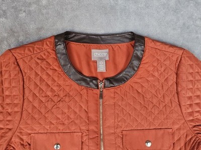 Chico's bittersweet orange quilted jacket with brown faux leather trim Sz 0