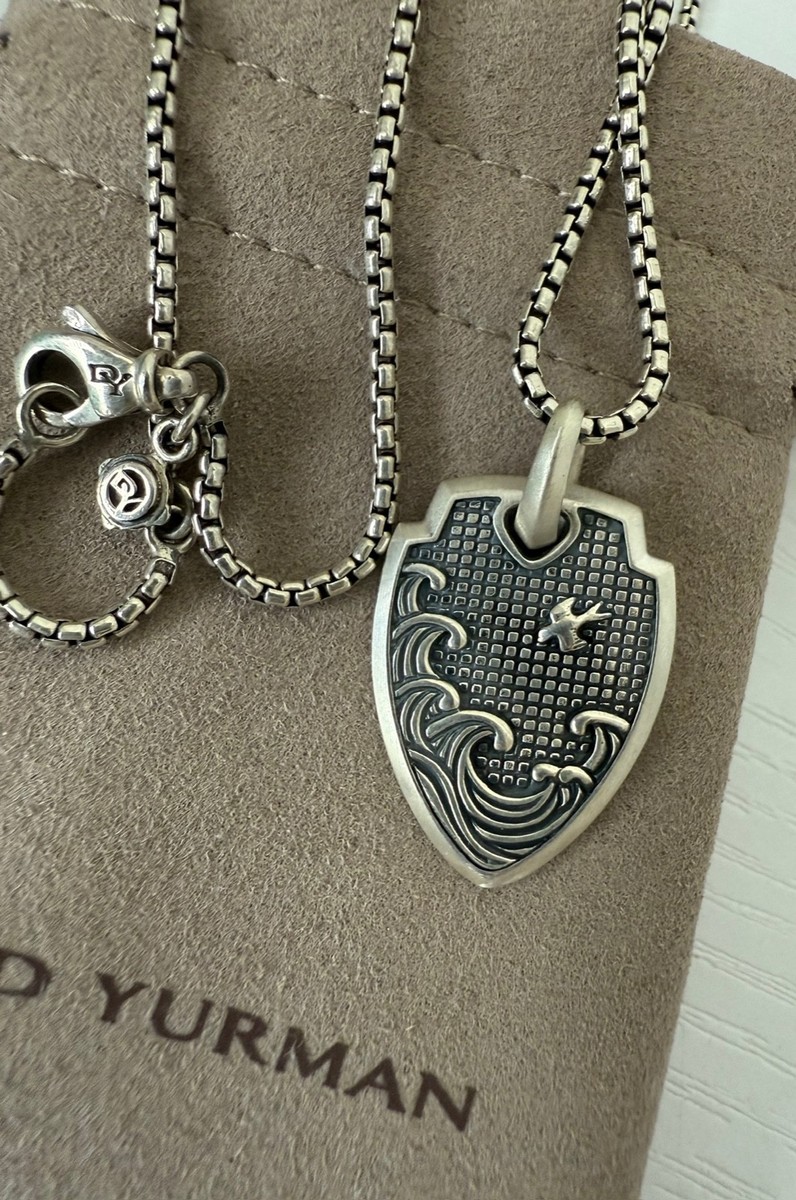 David Yurman .925 Sterling Silver Waves Shield Pendant & Box Chain 20"