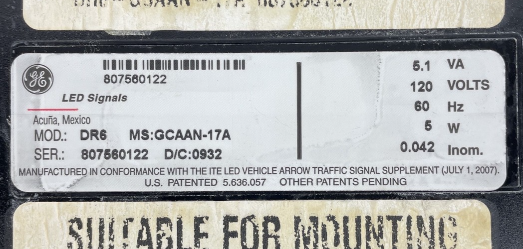 Clear General Electric GE 12” LED Green Arrow Traffic Signal Light With Gasket y