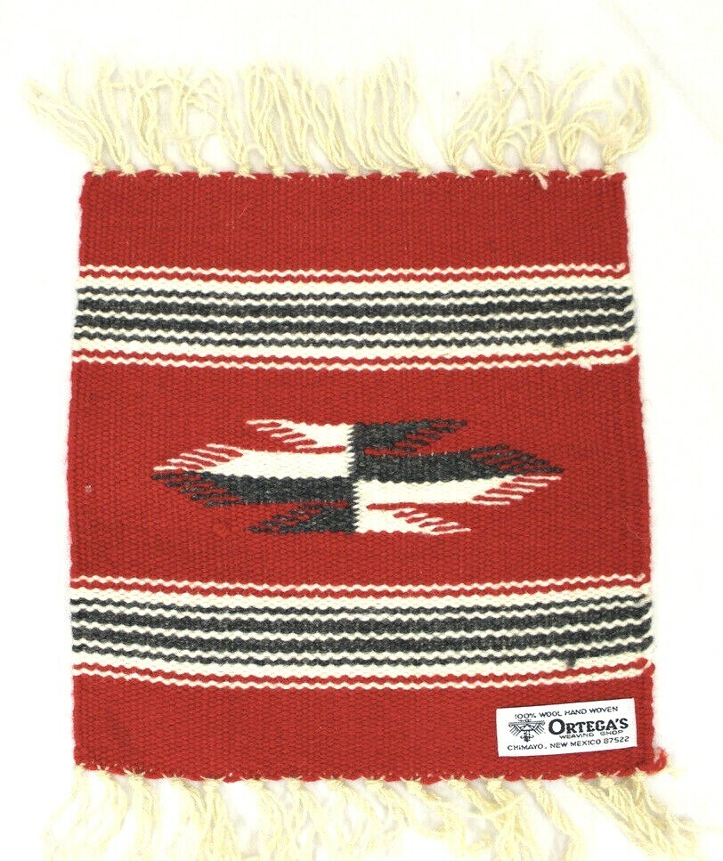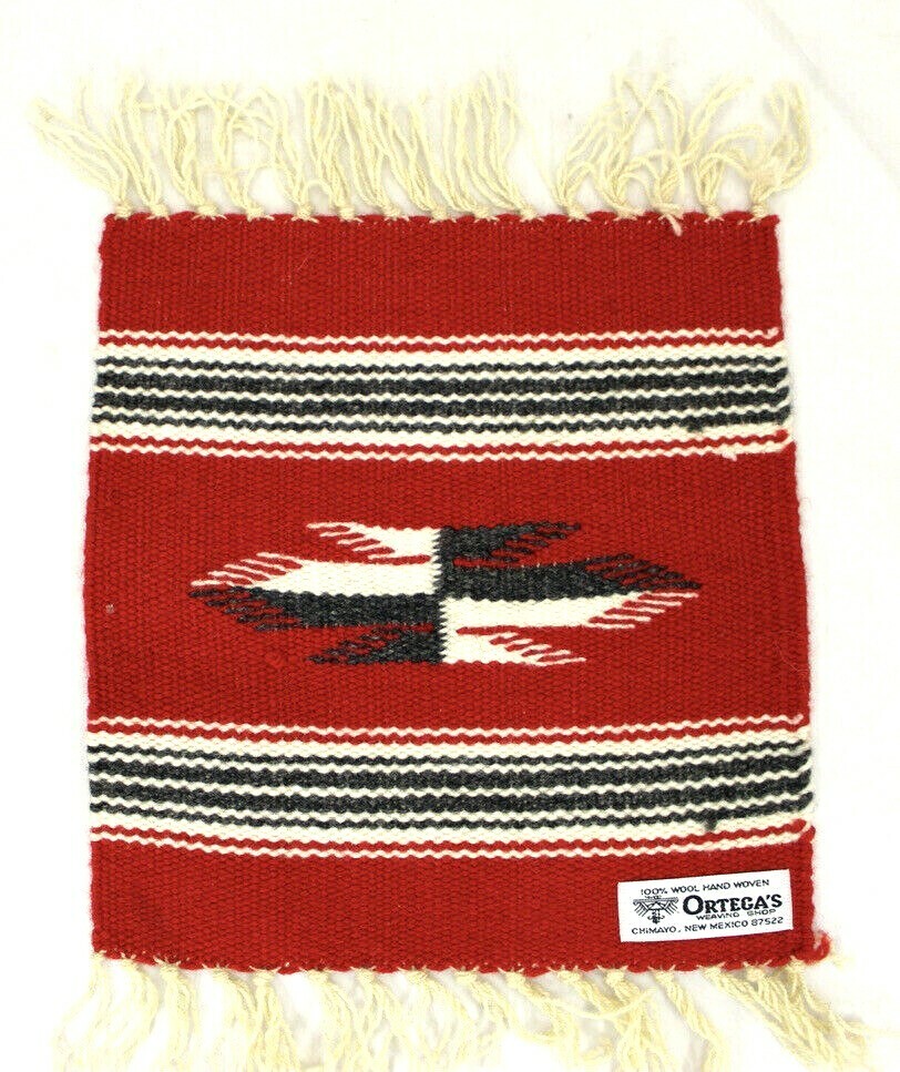 Chimayo New Mexico Ortega’s Weaving Shop 100% Wool Hand woven 10" X 10" RUG