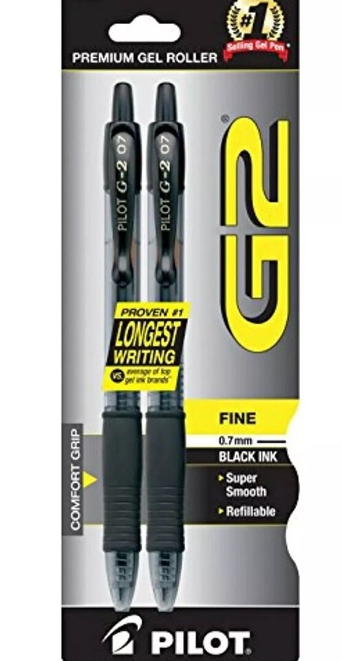 PILOT G2 Premium Gel Roller Smooth Ball Pen Fine Point BLACK Ink 2 pack