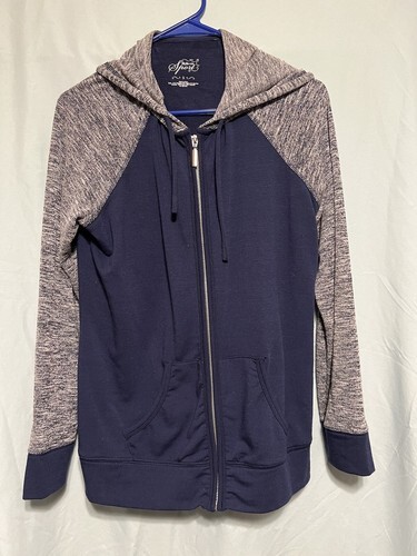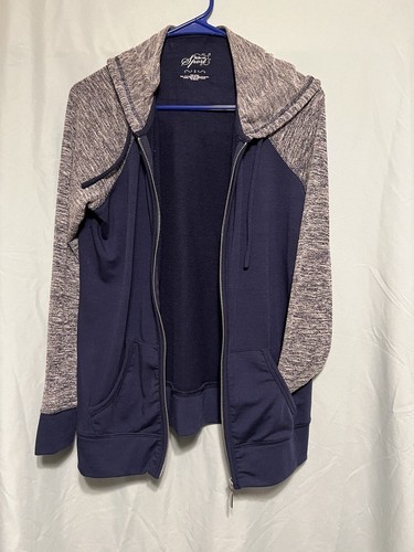 Style & Co Sport Blue And Gray Zipper Sweatshirt Women’s Size SM With Hood