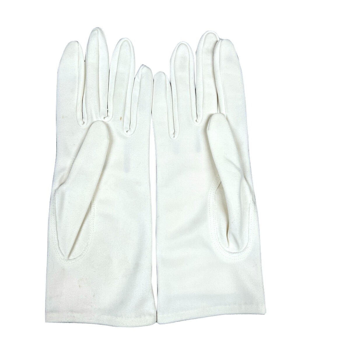 Made with a comfortable stretch (likely a nylon blend), they fit approximately a women's size 6 to 6.5. They measure about 9 inches long, offering that classic ladylike length. These gloves are the perfect accessory to add a touch of vintage charm to any outfit.