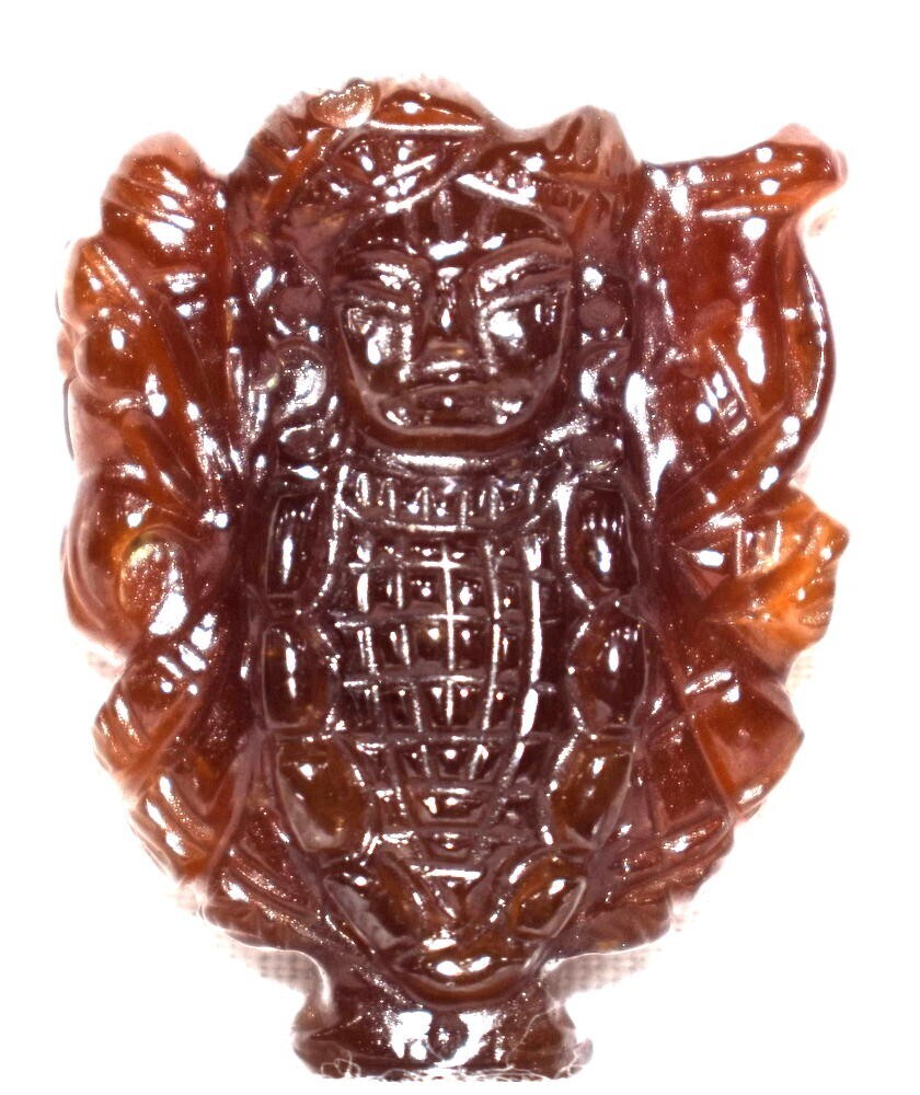 Product Name : ShreeNath In Gomed ? 37.55 carats Weight : 37.55 carats Dimension : 2.80 cm (Height) Description : Gomed is imperative for those suffering from malefic effects of Rahu. Malefics of Rahu increases mental tension, and makes one angry annoyed over small matters. One lacks decision-making power, and is always lost in day dreams and flights of fancies. May be kept in puja altar or work desk or worn as a locket.