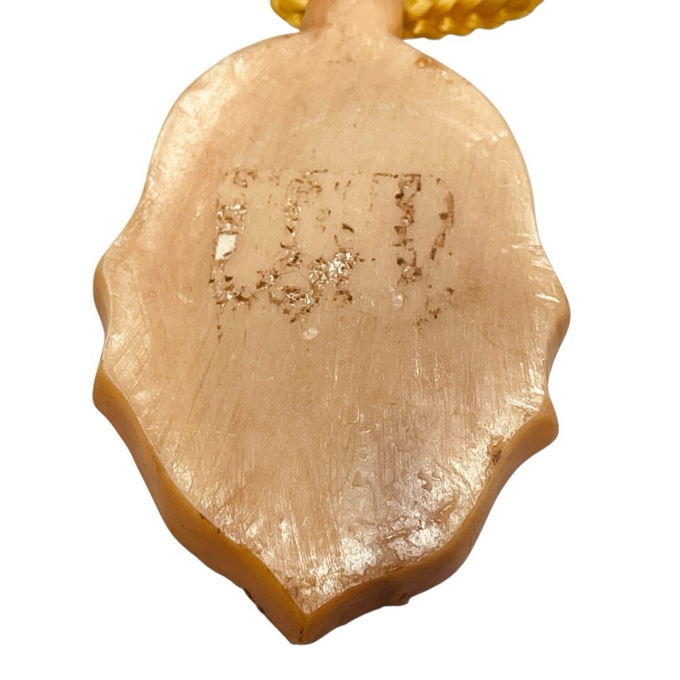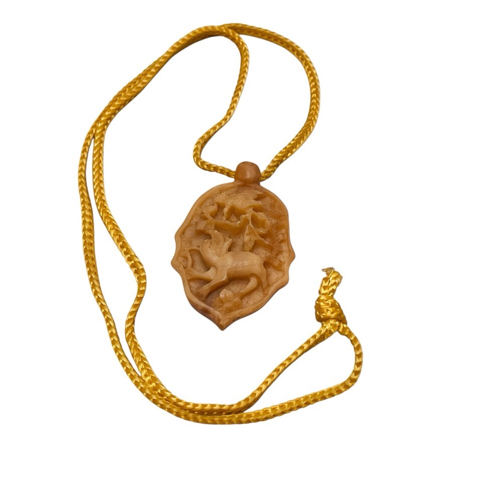 This estate find is an exquisite vintage Chinese Yupei pendant that features a hand-carved tiger and bird made of natural Hetian jade. The pendant showcases the beautiful orange toned color of the jade and the intricate details of the bird and tiger's design.