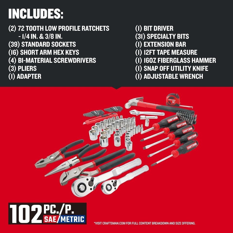 102-Piece Tool Kit for Home and Car, Durable Hand Tools Set