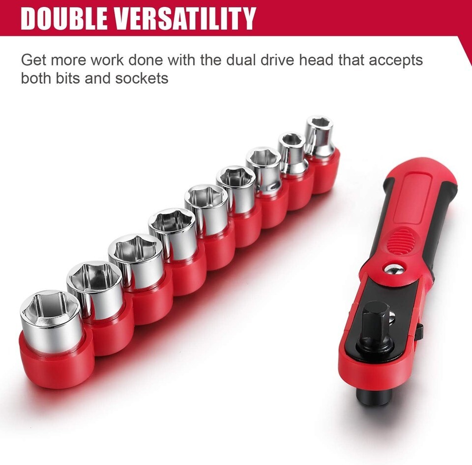 Tape measure, dual-head mini ratchet screwdriver, 1/4-inch magnetic bit driver, bit connector