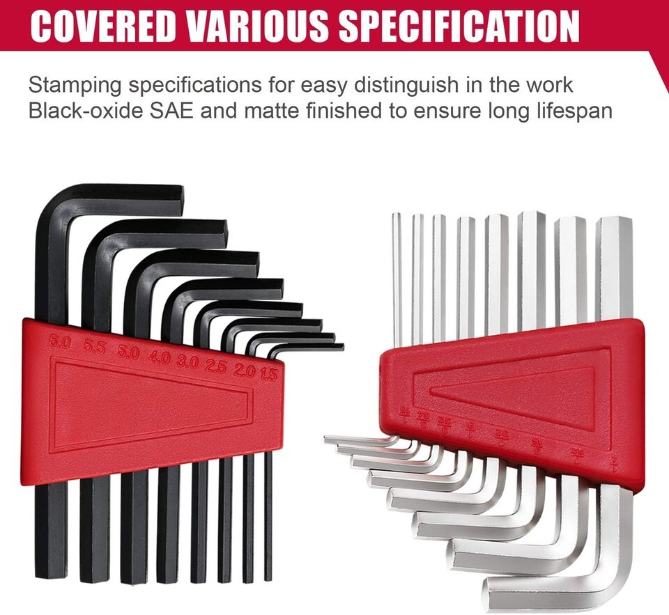 Metric and SAE hex keys, 1/4-inch driver sockets, and 1/4-inch screwdriver bits