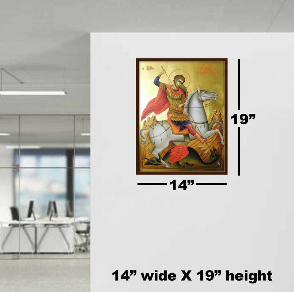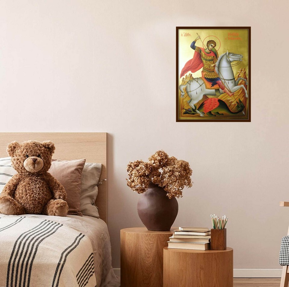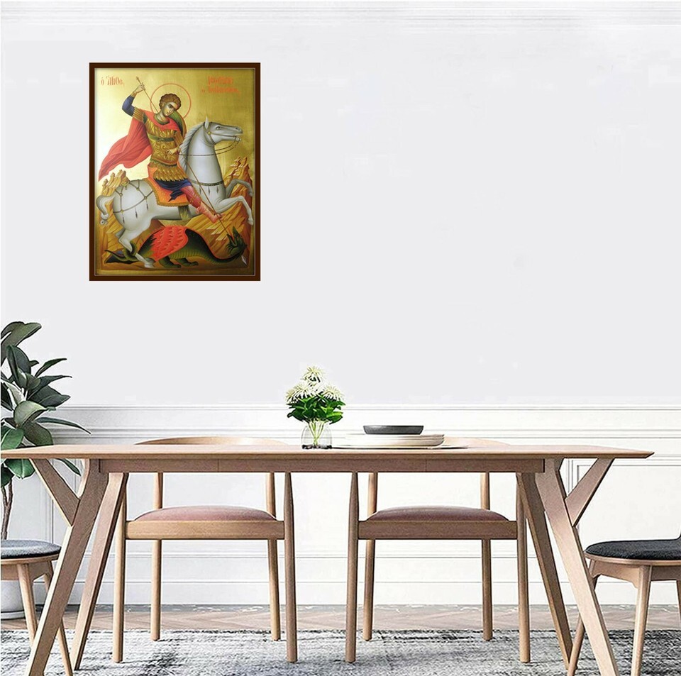 This icon of Saint George dragon is a very beautiful way to bring prayer inside your house, home, bedroom or even a work place.