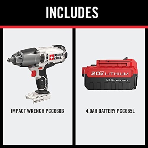 PORTER-CABLE 20V MAX Impact Wrench, 1/2-Inch (PCC740LA) Kit (Battery & Charger)