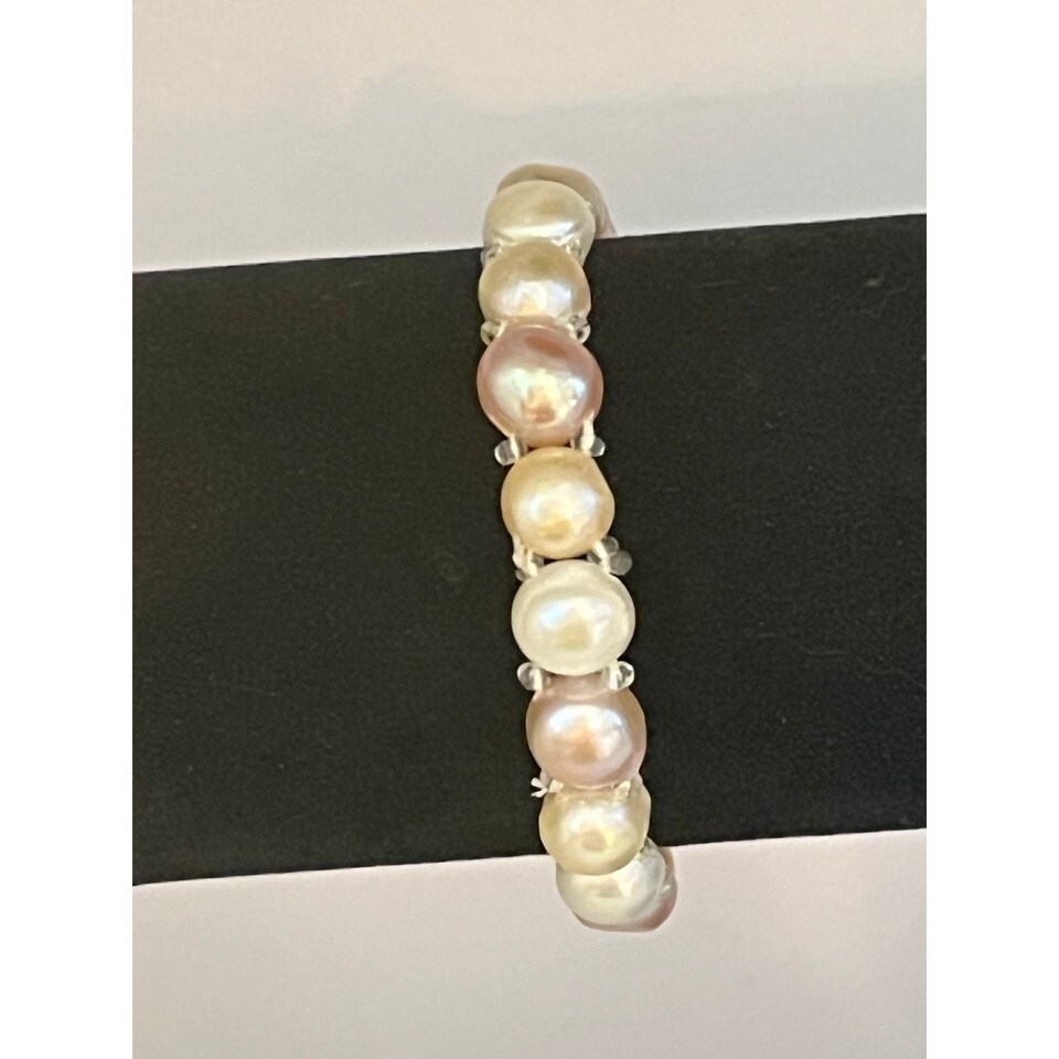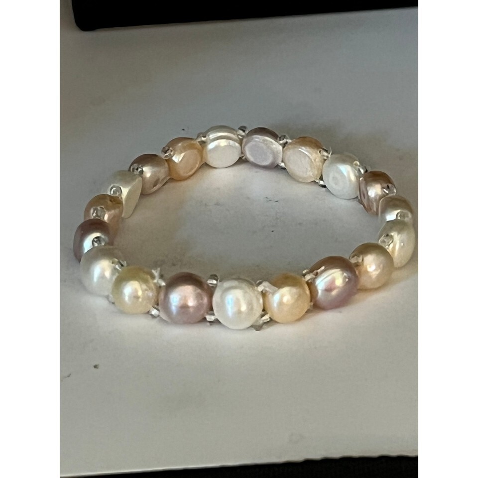 A GIFT BOX AND BAG WILL BE INCLUDED WITH EVERY ITEM PURCHASED DURING THE HOLIDAY SEASON.9 mm multicolor round shape button cultured freshwater pearl and clear tiny beads stretch bracelet. Pearls are approximately measures 9 mm in diameter each. Condition excellent.