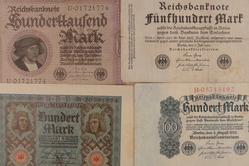 1920-1923 Germany 4-Notes Currency Set // Weimar Republic 100 500 100,000 Mark