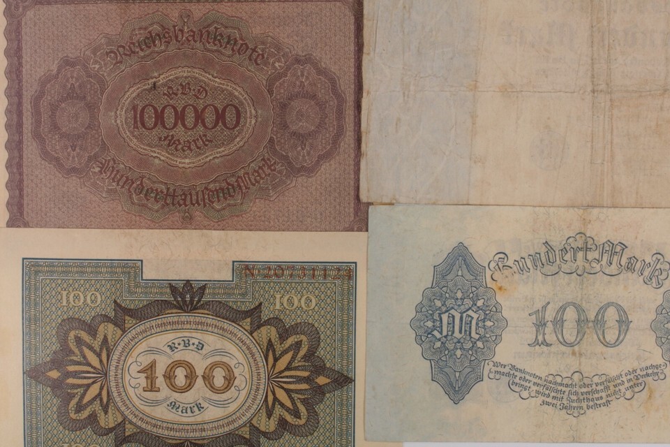 1920-1923 Germany 4-Notes Currency Set // Weimar Republic 100 500 & 100,000 Mark