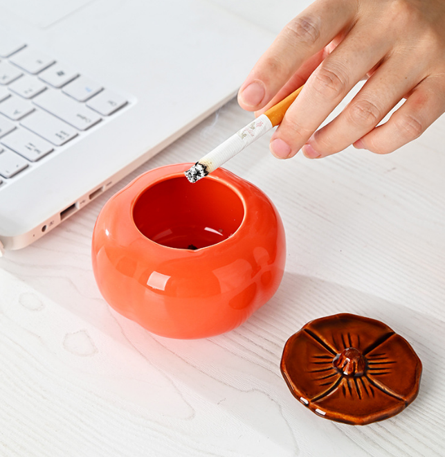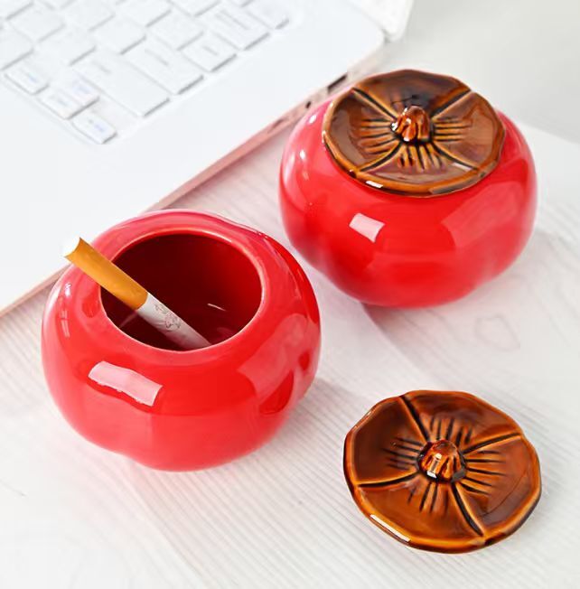 Creative persimmon-shaped ashtray with a unique and decorative look.