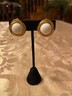 Trifari Goldtone White Cabochon Comfort Clip On Earrings