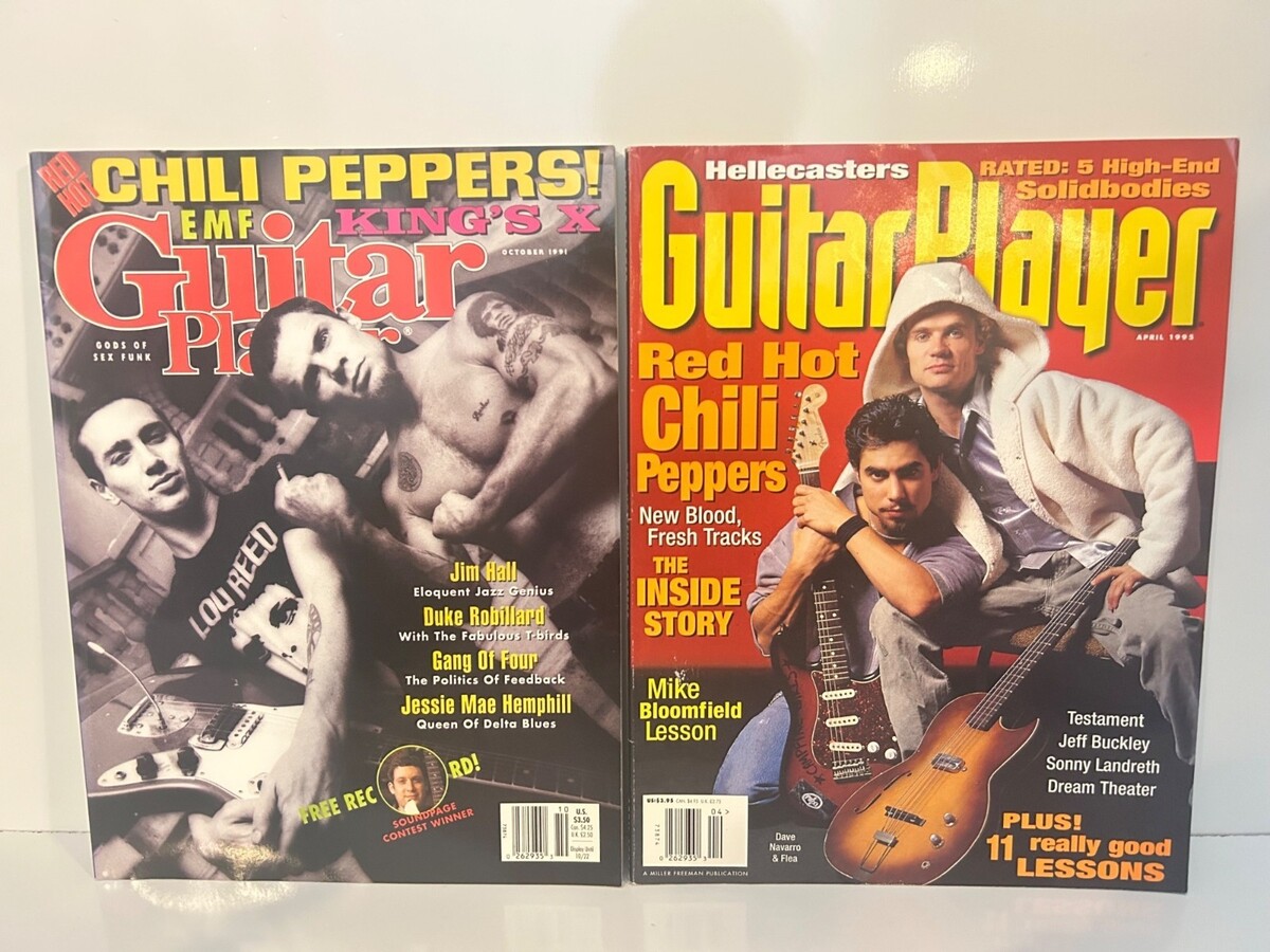 These vintage Guitar Player magazines from October 1991 and April 1995 provide a nostalgic dive into the world of iconic guitarists. Featuring Red Hot Chili Peppers? members Flea, Dave Navarro, and John Frusciante, these editions explore interviews, techniques, and insights into legendary music-making. A collectible glimpse into 90s rock culture. The 1991 edition also has a record insert of Ken Rubenstein.