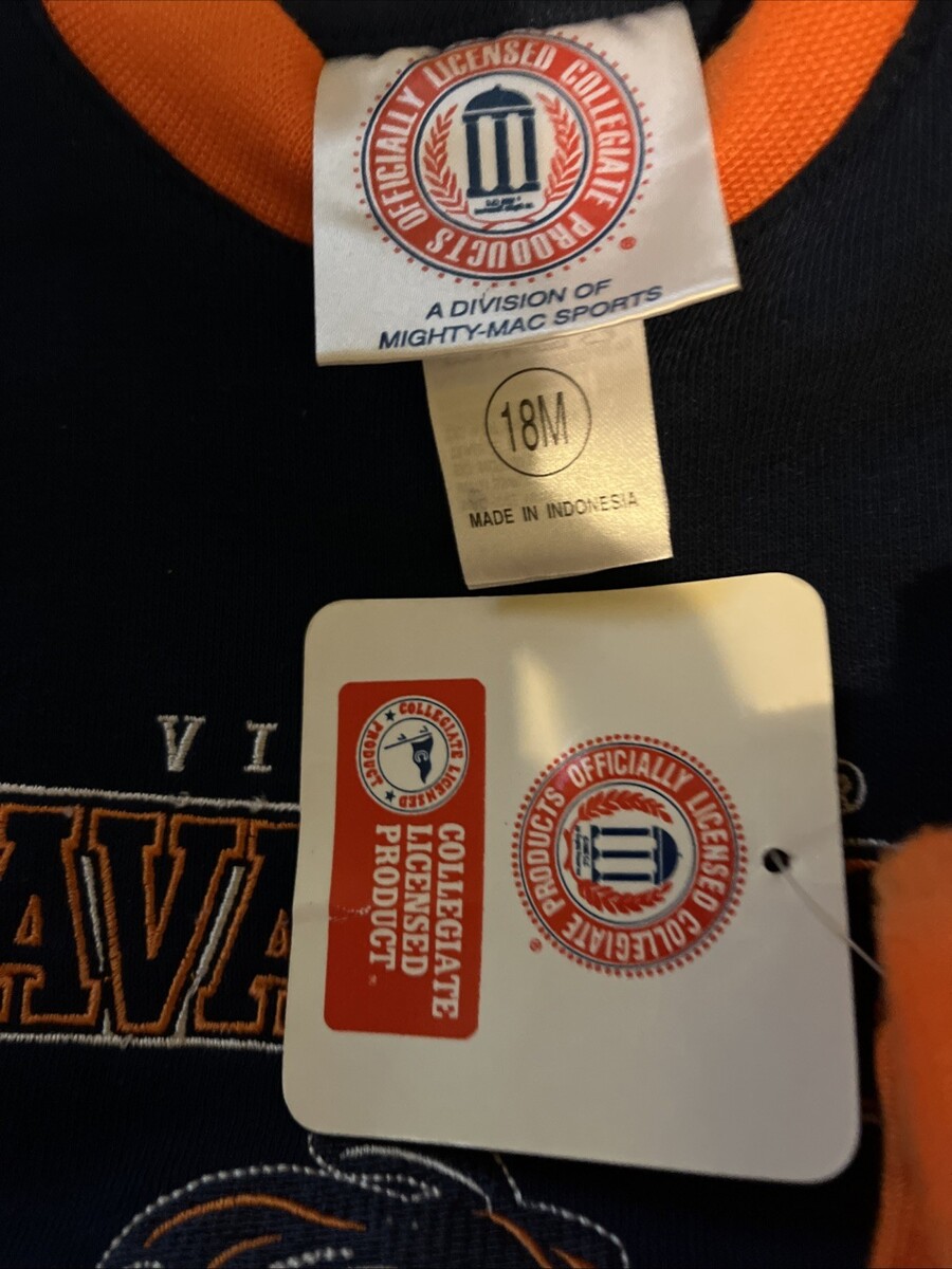 Virginia Cavaliers Baby Boys 2-Piece Jogging Suit Outfit Multi-Color New with imperfections. There is lint ball over the orange areas on this set due to handling and storing.