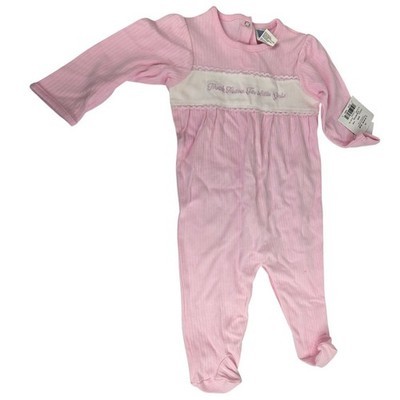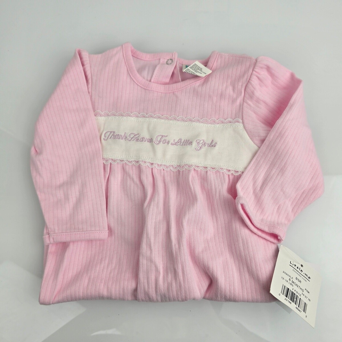 Vtg Little Me Pink White Footed Romper 3-6 M "Thank heaven For Little Girls"