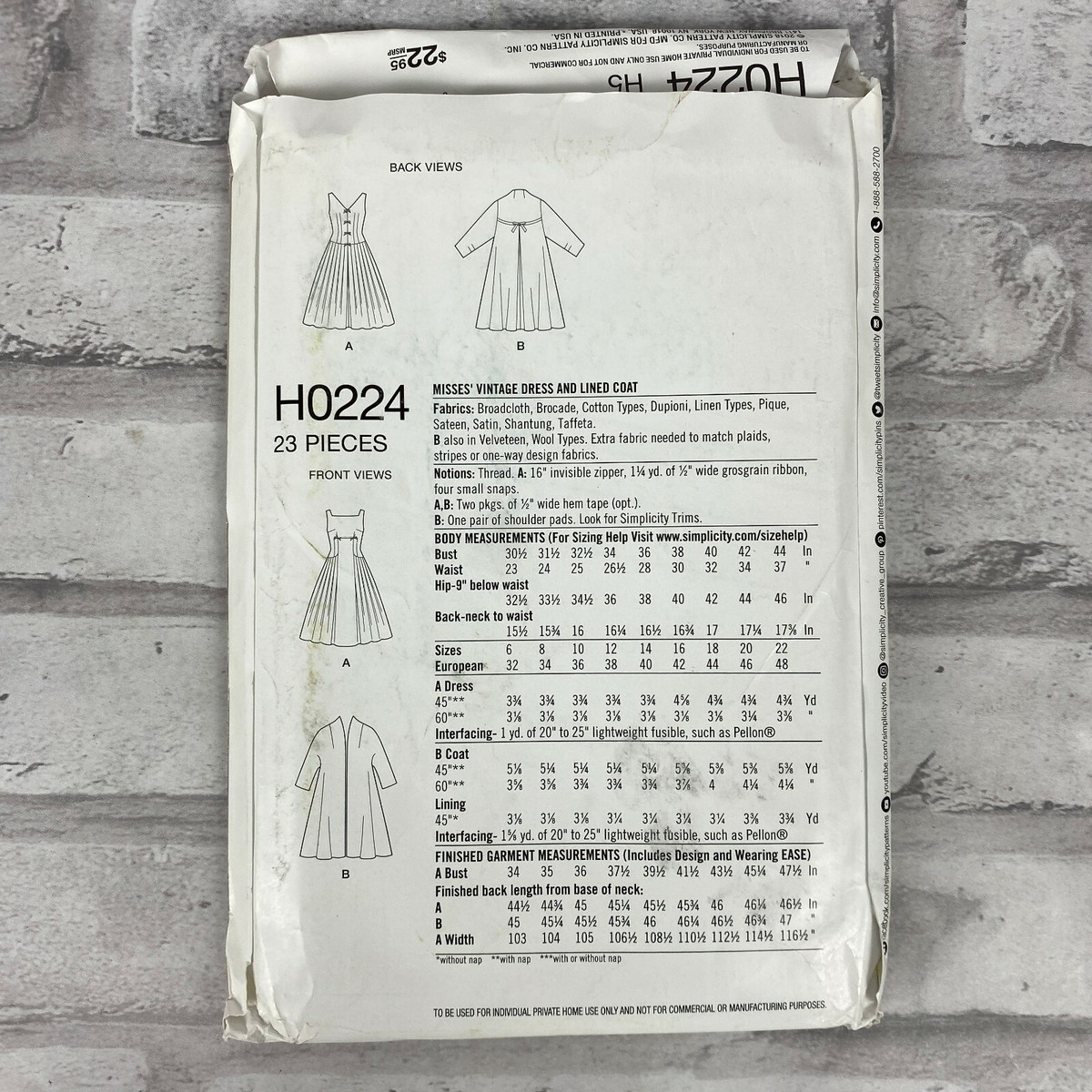Simplicity H0224 1950's Vintage Pattern Dress and Lined Coat New and Uncut 6-14