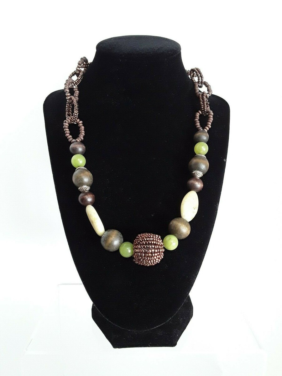 For Sale: COLDWATER CREEK Bohemian BOHO Beaded Brown Green Necklace