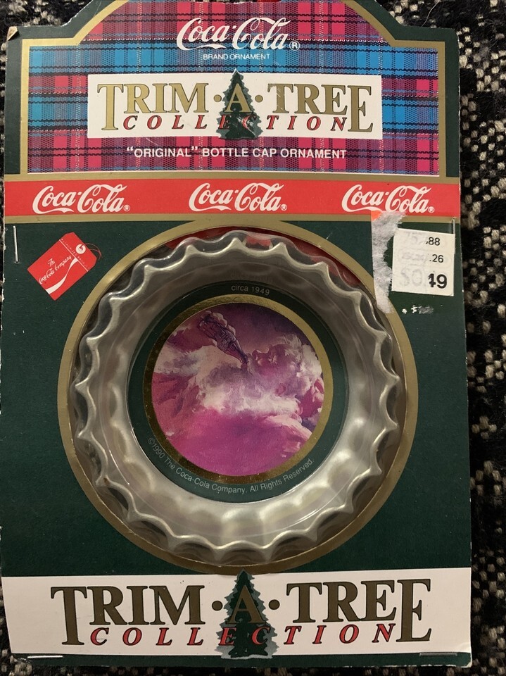 Add a touch of nostalgia to your Christmas tree with the Coca-Cola Trim a Tree Collection's Santa Claus Bottle Cap Ornament. This plastic reproduction is colored in silver and is part of the soda-themed collectibles. The Coca-Cola brand is inscribed on the bottle cap ornament that dates back to 1938, according to the box.