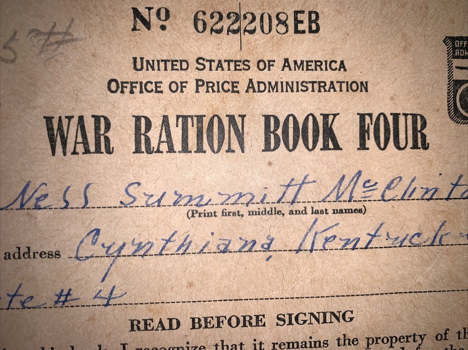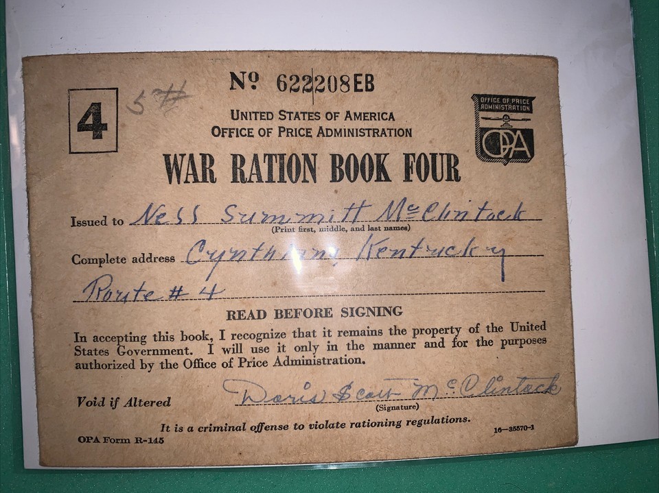 WW11 War Ration Books- 4 Crrynthiana  Kentucky