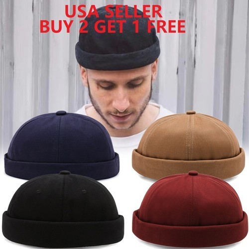 Men Hats Docker Cap Hats Beanie Sailor Cap Worker Hat Rolled Cuff Retro Brimless