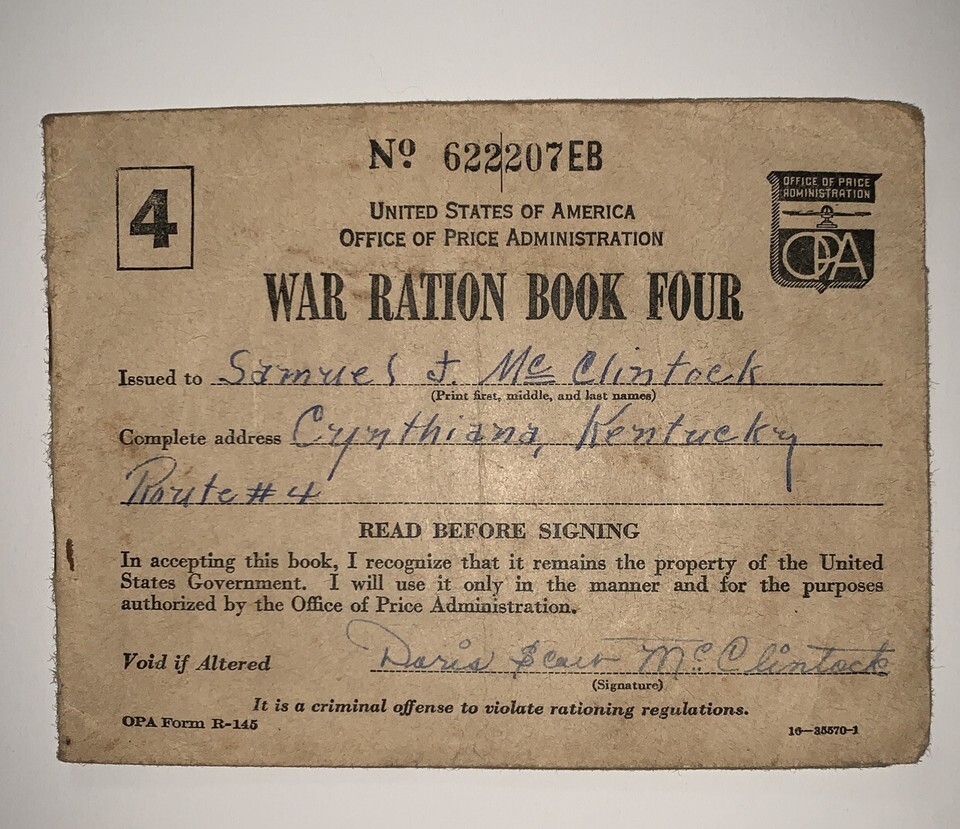 Vintage WW11 War Ration Books- 4 Crrynthiana  Kentucky