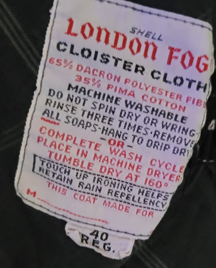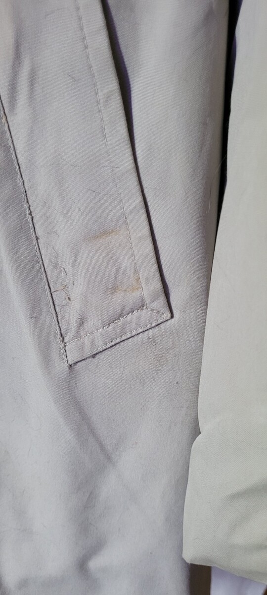 This coat is in good used condition. There are no holes that I found. All of the buttons are intact. There are some spots, as seen in the photos. We did a light wash. I believe with a heavier wash it would come clean. The size is 40 Regular. Measurements are approximately: Length: 39 inches. Pit to Pit: 24 inches. Sleeve: 22 inches.