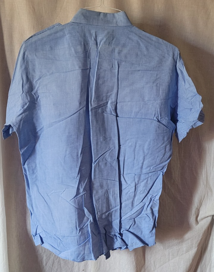 Men's Arrow Sportswear Shirt L Button-Up Short Sleeve 100% Cotton Blue Solid