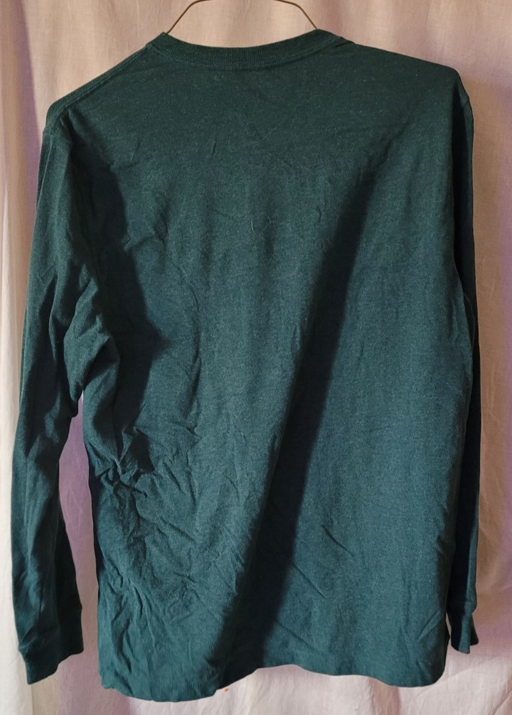 This shirt is in good used condition. There are no holes or stains that I found. The size is Medium. Measurements are approximately: Length: 30 inches. Pit to Pit: 23 inches. Sleeve: 26 inches.
