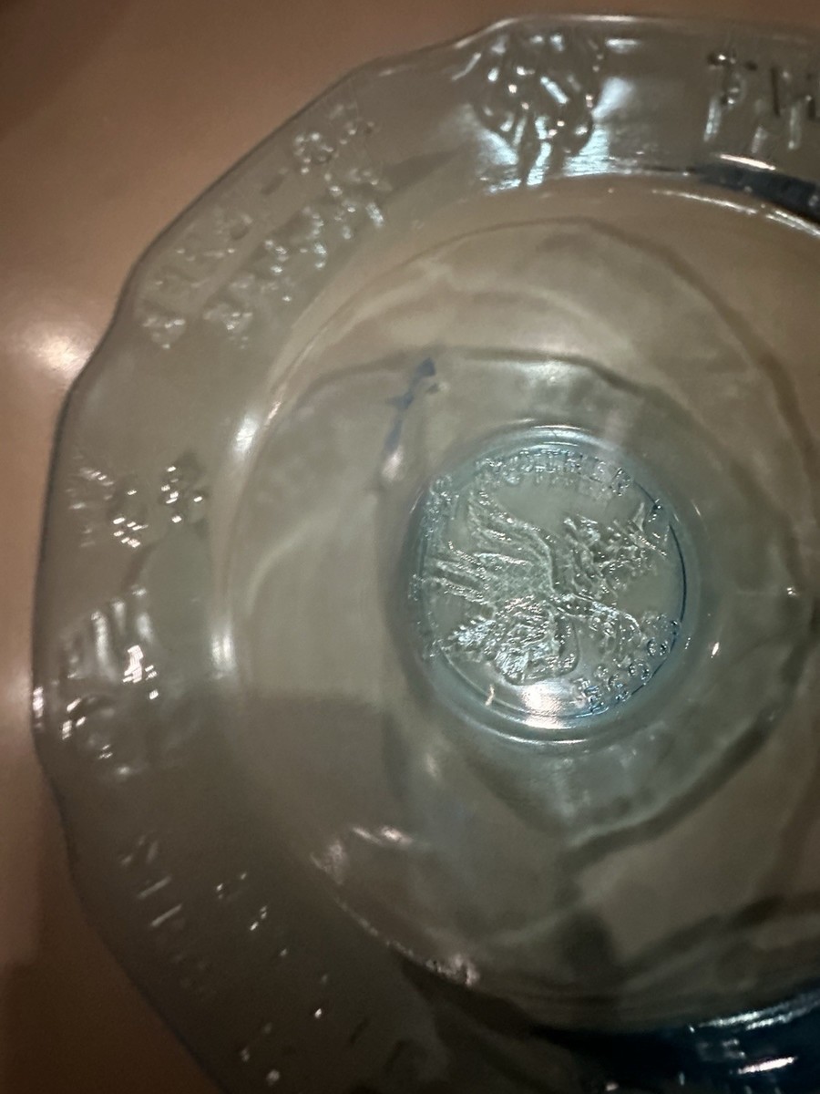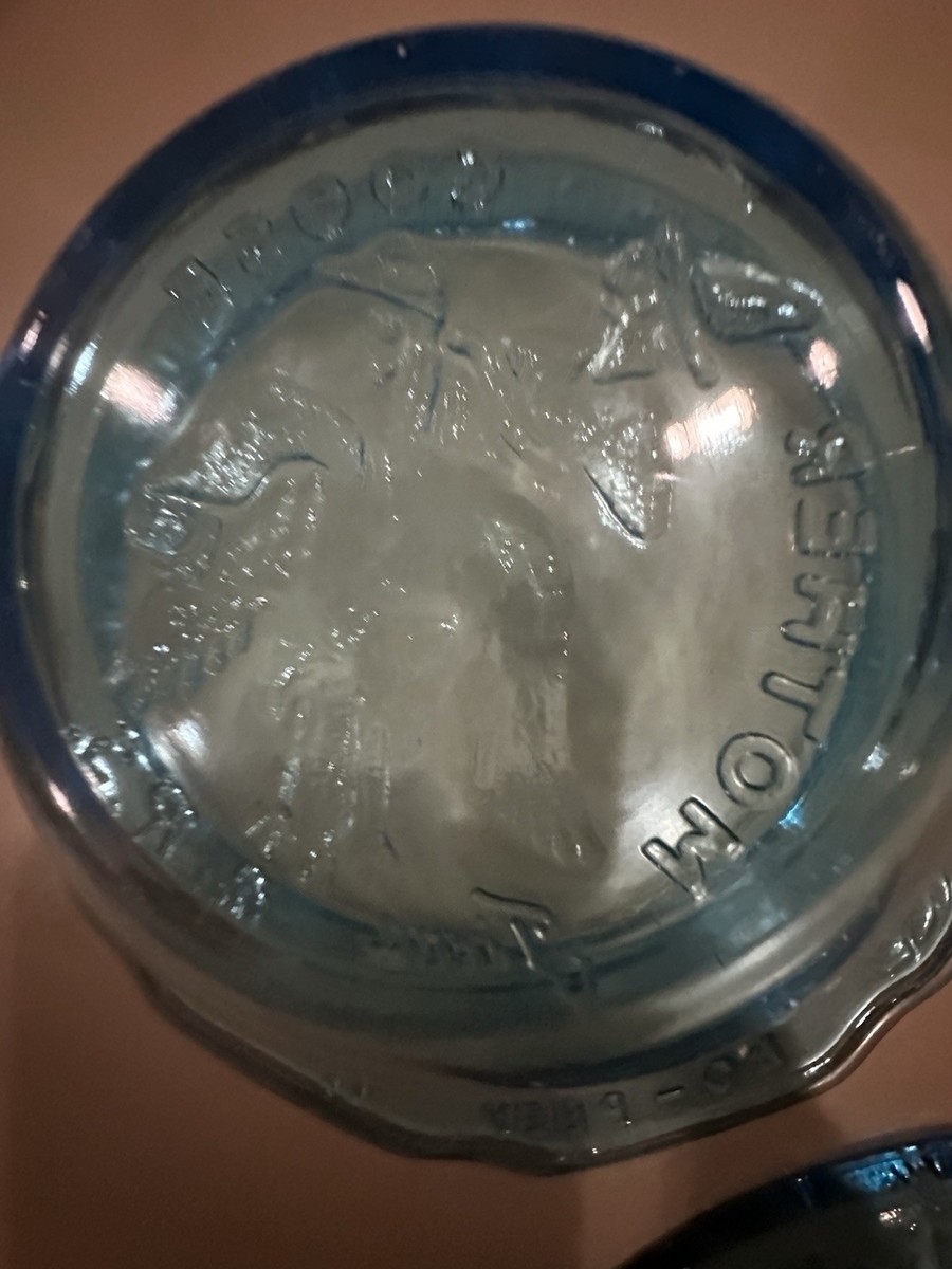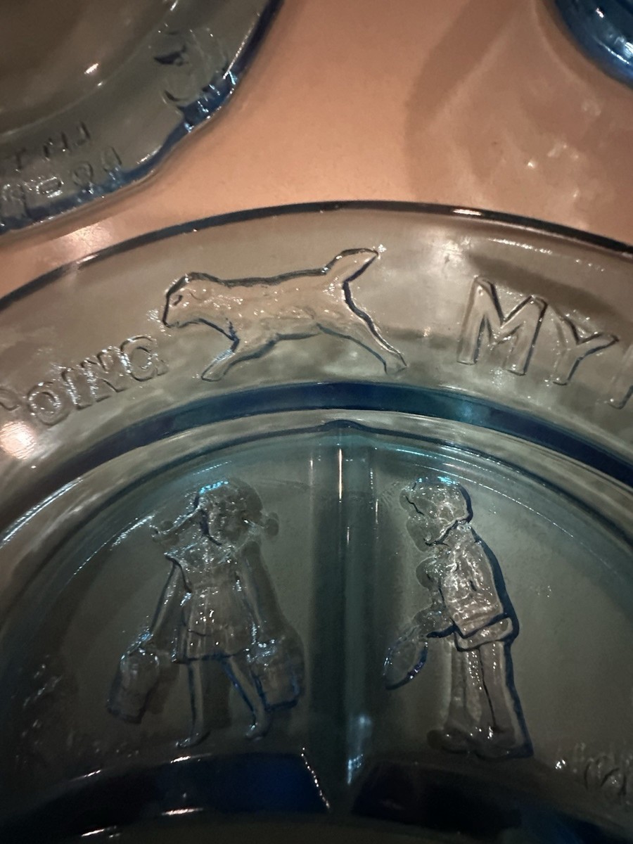 Vintage Tiara Glass Mother Goose 4pc Nursery Rhyme Dish Set Aqua Blue Pre Owned