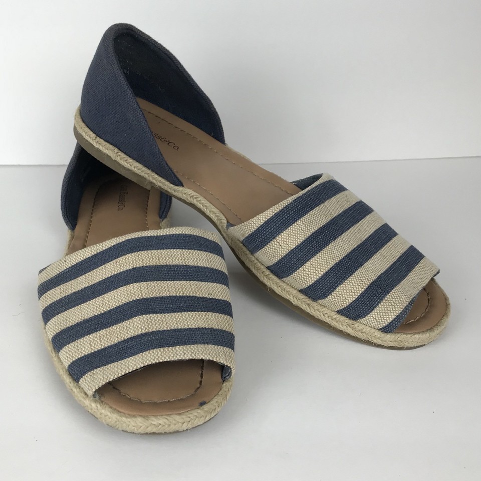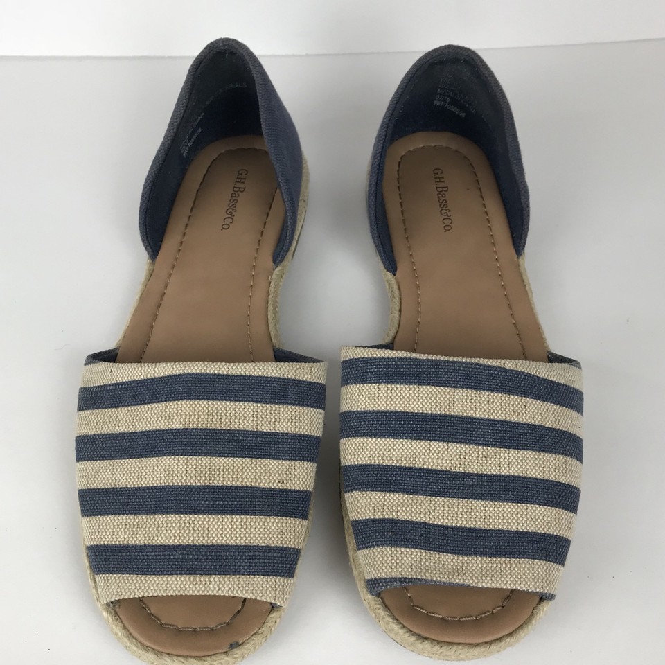 G H Bass Women's Size 9M Trish Striped Fabric SlipOn Open Toe Sandals Blue White