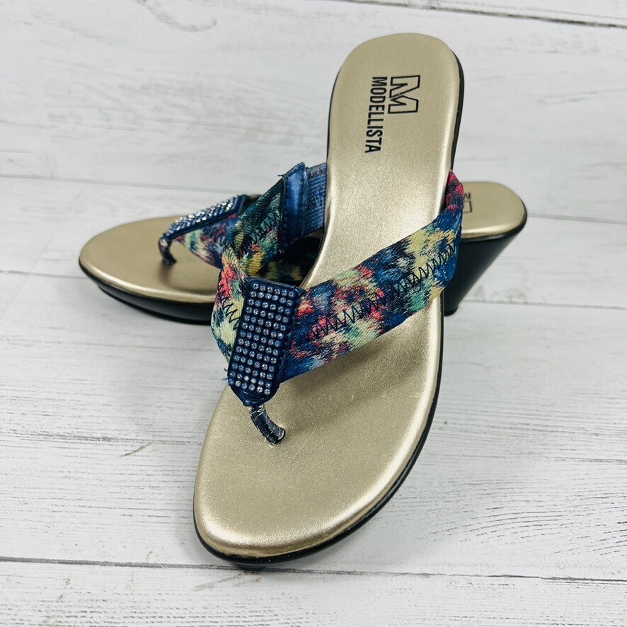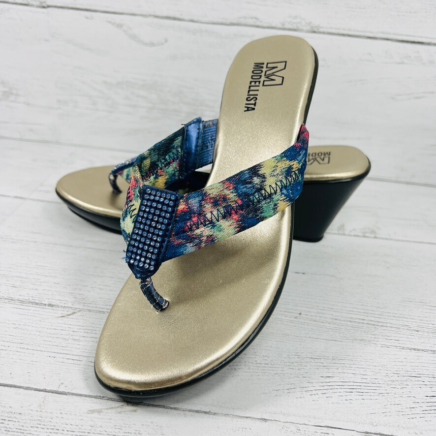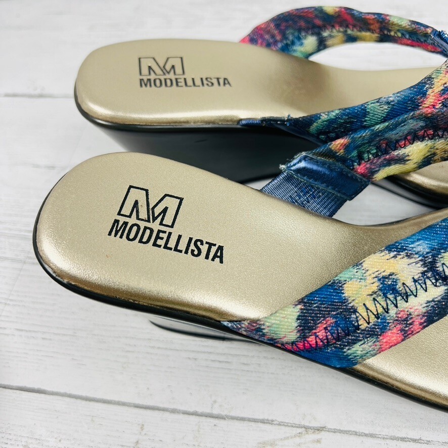 Modellista Sz 6 M Blue Flip Flop Fabric Women Sandals Wedge Slip-on Summer Rhea.